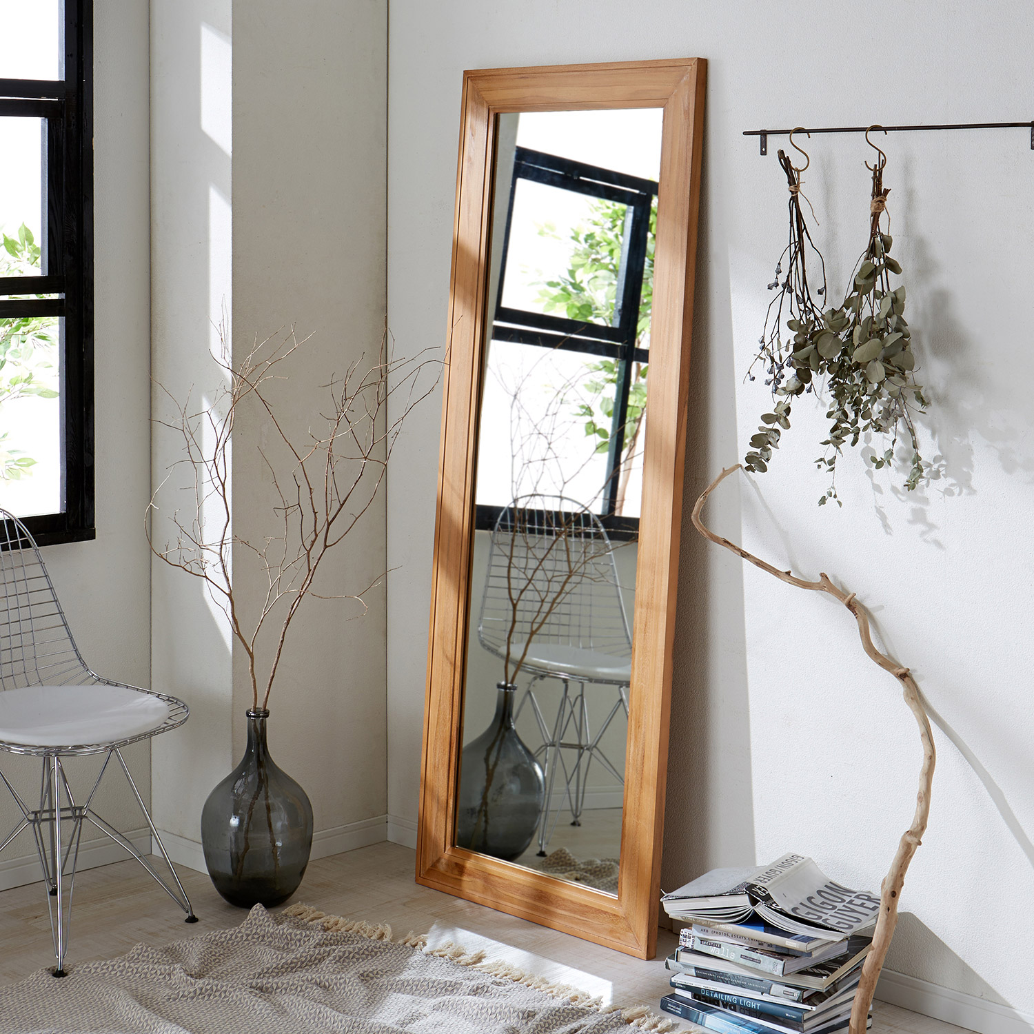 【ベルメゾン】チーク材の立て掛けウォールミラー ナチュラルな木質感を楽しめる天然木チーク材をフレームに使用。しっかり太さのあるフレームが、空間におしゃれな存在感を与えてくれます。 税込 46,400円 |