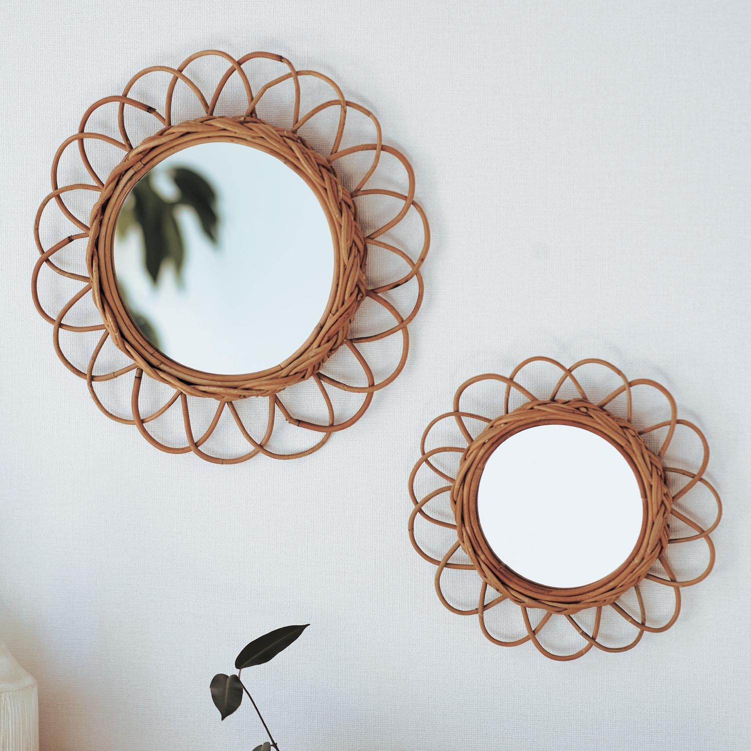 【ベルメゾン】Bohoスタイルのラタン素材のフラワーウォールミラー 部屋はシンプルにまとめて、小物で旬のテイストを楽しむのがインテリア上手のコツ。流行のBohoスタイルで人気の天然素材“ラタン”をフレームに使用したミラー。花を思わせるデザインは、大小並べて親子使いしても素敵。 税込 2,750〜3,300円 |