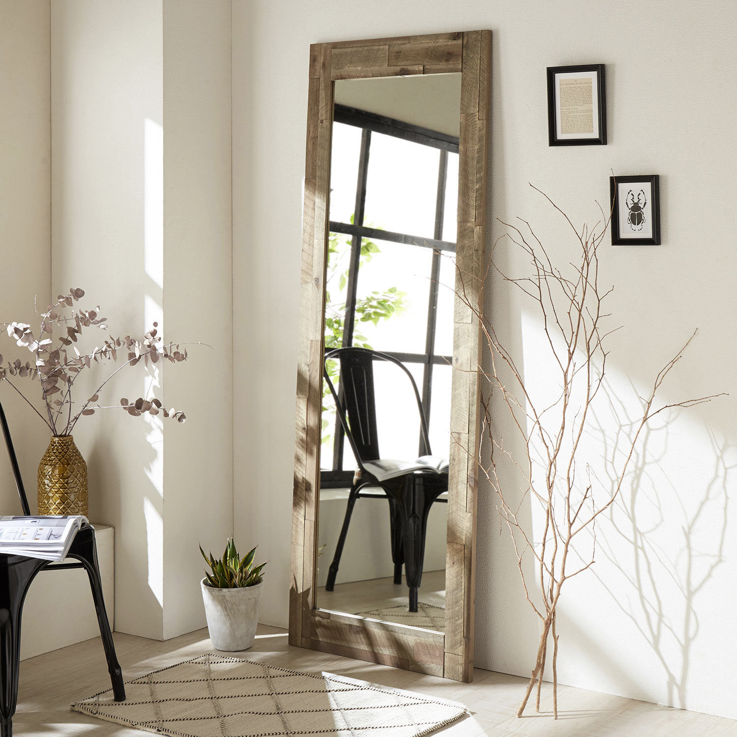 【ベルメゾン】荒い加工のヴィンテージ調アカシア材のスタンドミラー[日本製] 荒々しい木質感を楽しめる天然木アカシア材をフレームに使用。しっかり太さのあるフレームが、空間におしゃれな存在感を与えてくれます。ワイドサイズのウォールミラーはしっかりと全身を映せるのはもちろん、視覚効果でお部屋を広く見せてくれるのもポイント。 税込 21,400〜31,900円 |