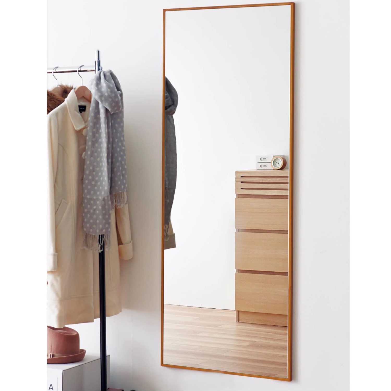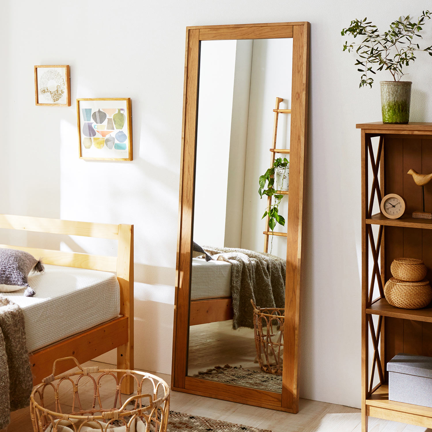 【ベルメゾン】パイン材のスタンドミラー 天然木パイン材の木目の美しさを生かしたスタンドミラー。細みのフレームで重くなりすぎず、シンプルで圧迫感のないルックスが魅力です。 税込 11,900〜13,900円 |
