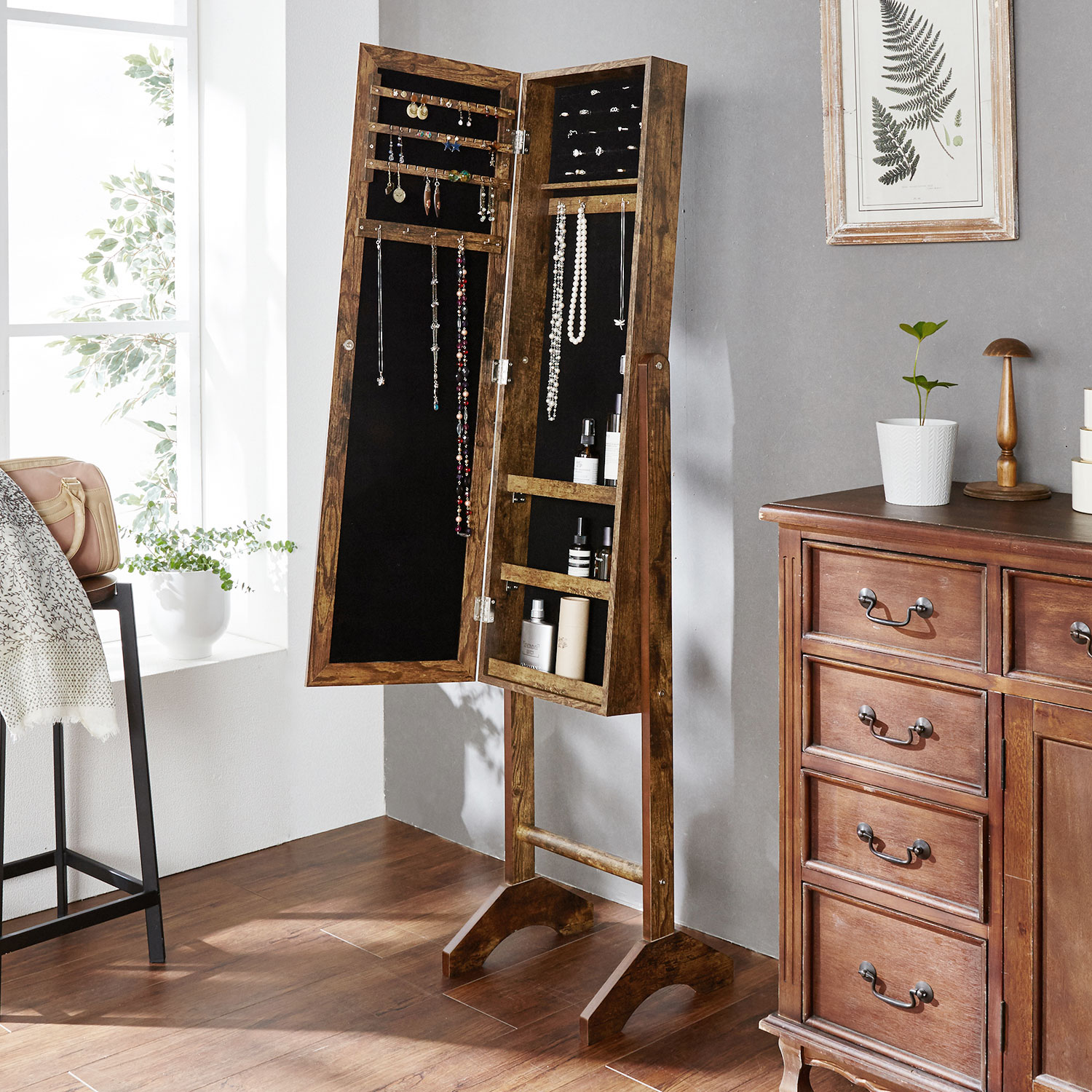 コーディネイトの総チェックに欠かせない、 ルーム ミラー。毎日の身だしなみの必需品です。