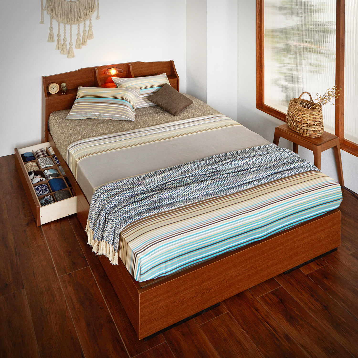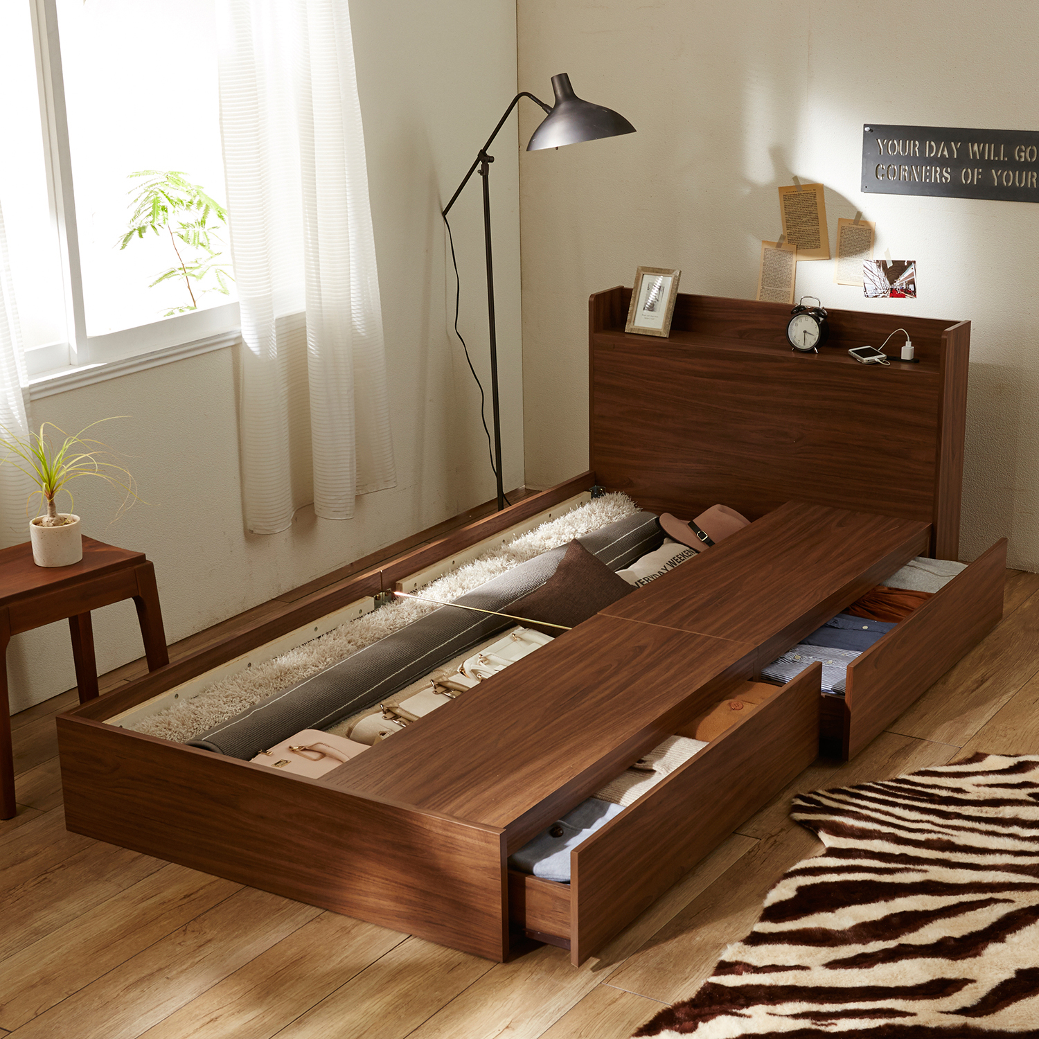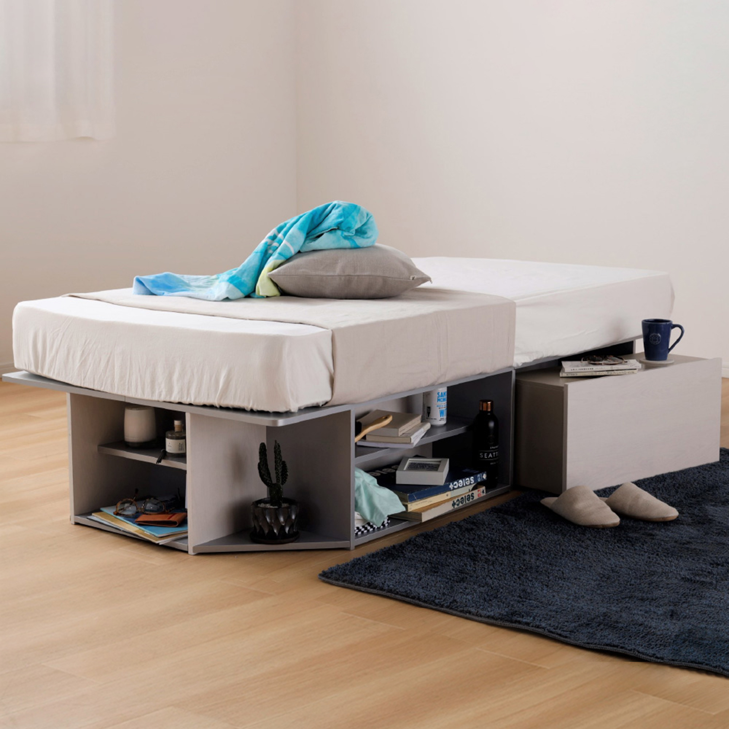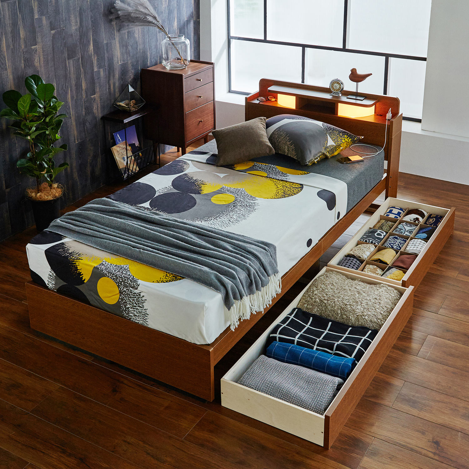 ベッドまわりがすっきり片付く 収納 ベッド。ベッド下スペースを無駄なく有効活用。すっきりと片付いた寝室空間を叶えます。