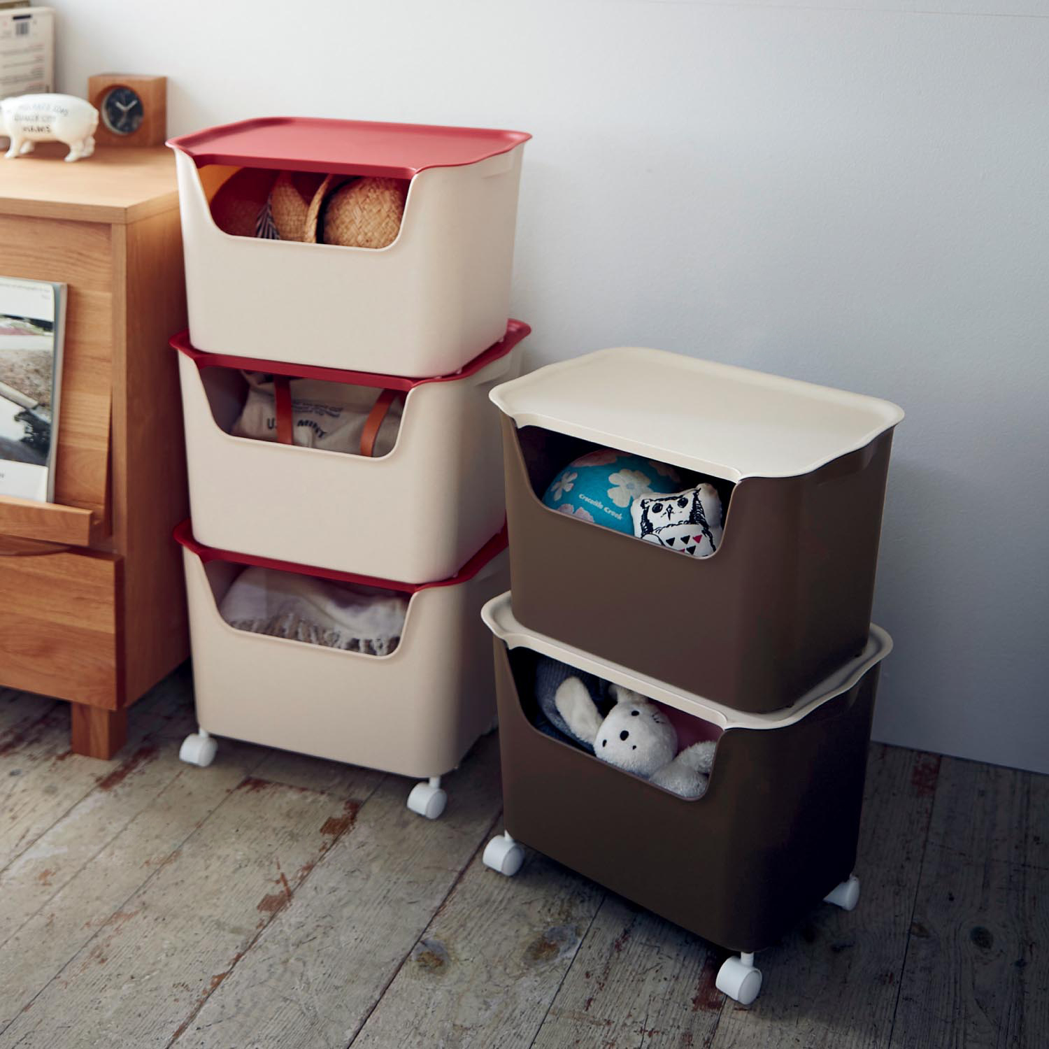 【ベルメゾン】キャスター付きスタッキング収納ケース リビング周りや子供のおもちゃをがさっと収納するのに便利なキャスター付きのボックス。深×深、浅×深の2タイプから選べます。スタッキングして使用しても、別々で使用しても◎ 税込 3,390〜3,690円 |