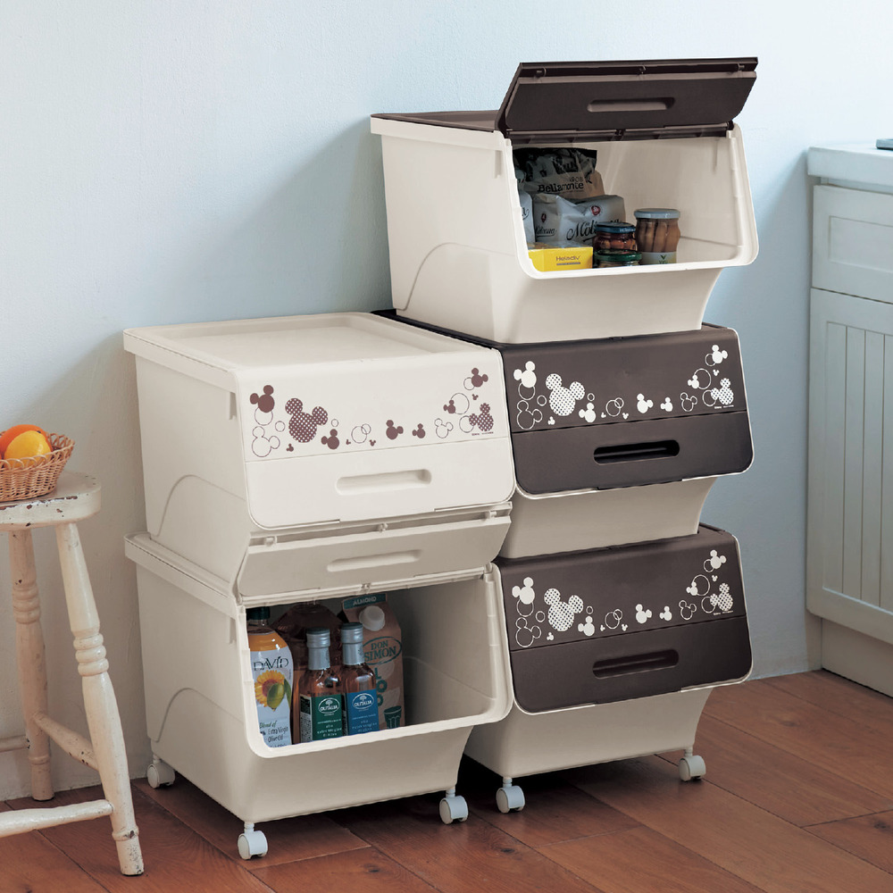 【ディズニー/Disney】キャスター付き収納ケース「ミッキーモチーフ」 積み重ねたままでもフタを開けて出し入れ可能。子ども部屋で衣類やおもちゃなどの収納、またキッチン・サニタリーシーンでも活躍。扉を開けたまま出し入れできて便利。キャスター付きでお掃除もラクラ。 税込 7,990〜9,990円 |