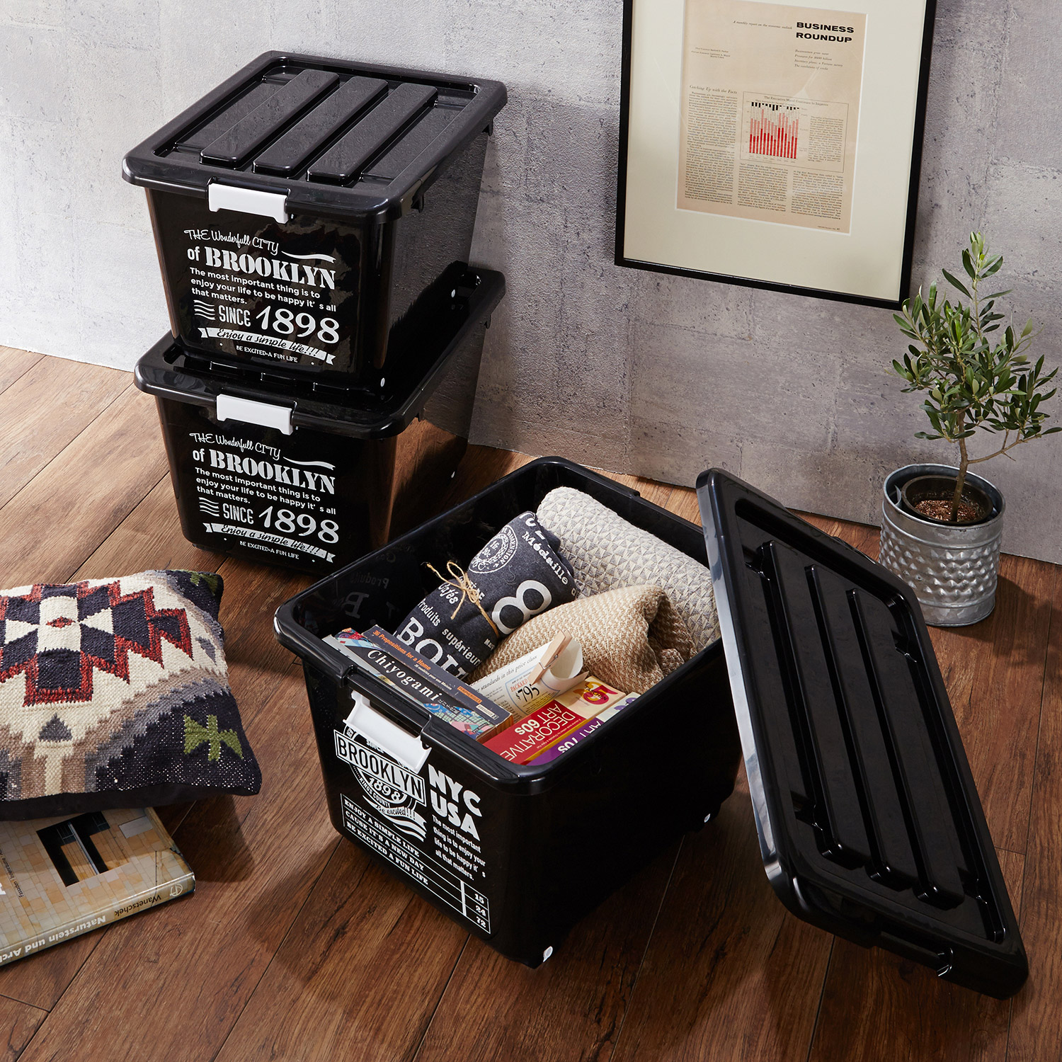 【ベルメゾン】ブルックリンデザインの樹脂収納ボックス3個セット【奥行50cm】 前面にクールなプリントをあしらった、ブルックリンデザインの収納ボックス。中が透けないから、おもちゃや小物、衣類をごちゃつき感なく収納することができます。スタッキングできるので縦のスペースを無駄なく活用でき、フタにはコロがはまる溝をつけ安定性も◎。 税込 6,290円 |