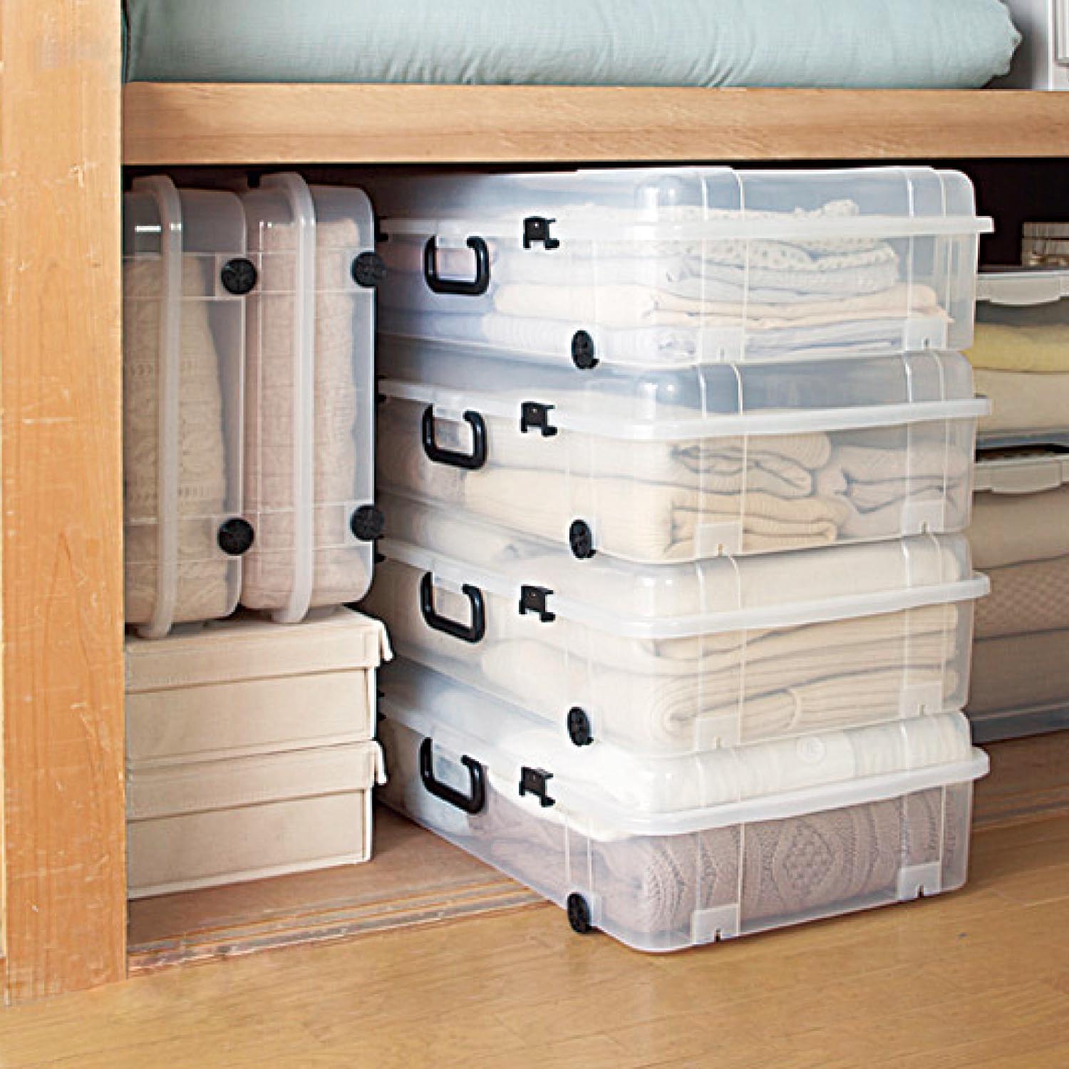 【ベルメゾン】ベッド下収納ケース同色3個セット・4個セット ベッド下の空きスペースを有効利用できる、便利な薄型収納ケース。フタは半分だけでも開閉するので、収納物の出し入れもスムーズです。移動に便利なコロキャスターは、タテヨコどちらにも付け替えOK。 税込 5,090〜6,490円 |