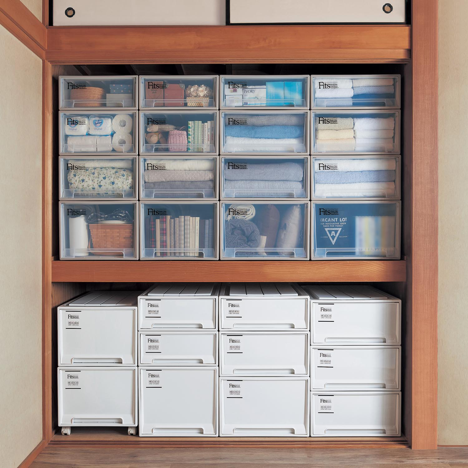 【フィッツ/Fits】押入れ収納ユニットケース2個セット 使いやすく、豊富なサイズで定番人気の収納ケース。しっかりした作りで安心してスタッキングできます。たっぷり収納しても軽く引き出せます。 税込 7,990〜11,490円 |