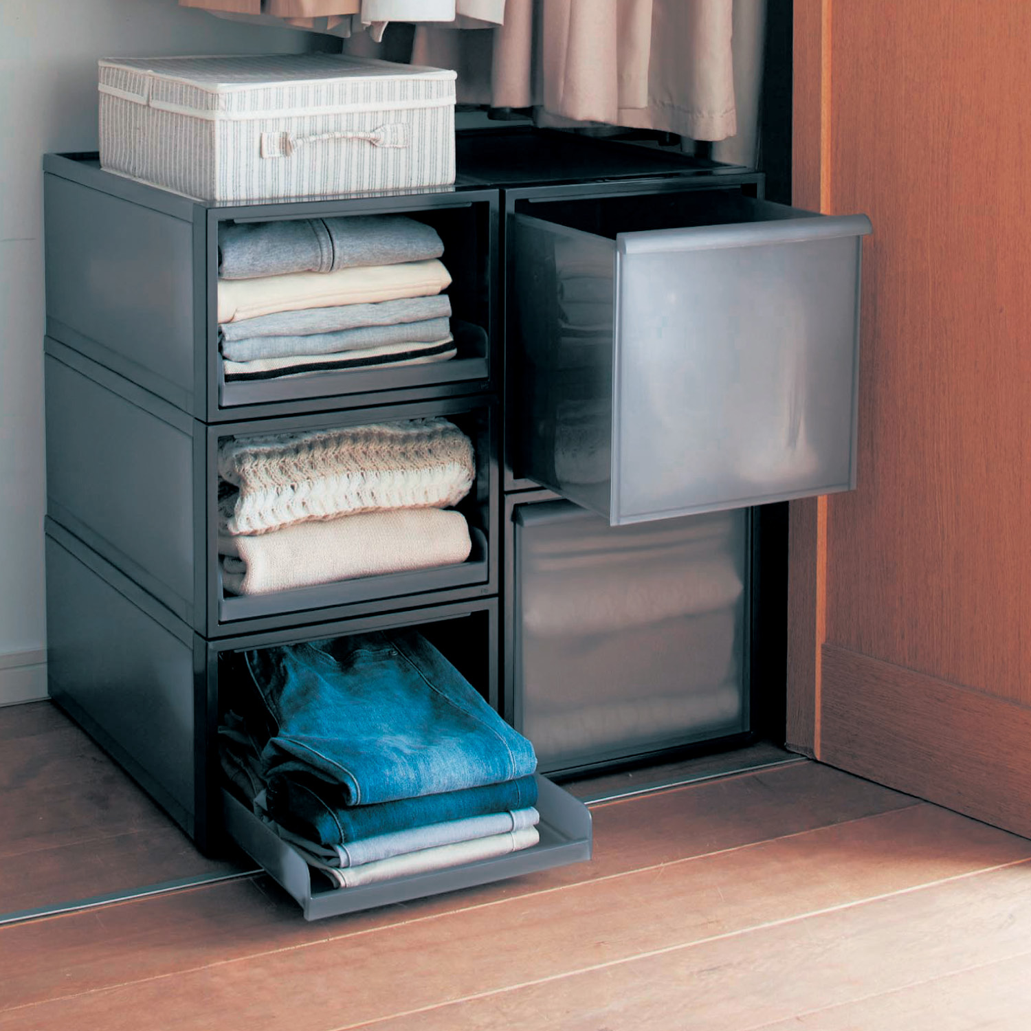 毎日の身支度や、季節の衣替えがグンと楽になって、家族みんなの衣類管理もスムーズなる収納 ボックス。空きスペースも有効活用できます。