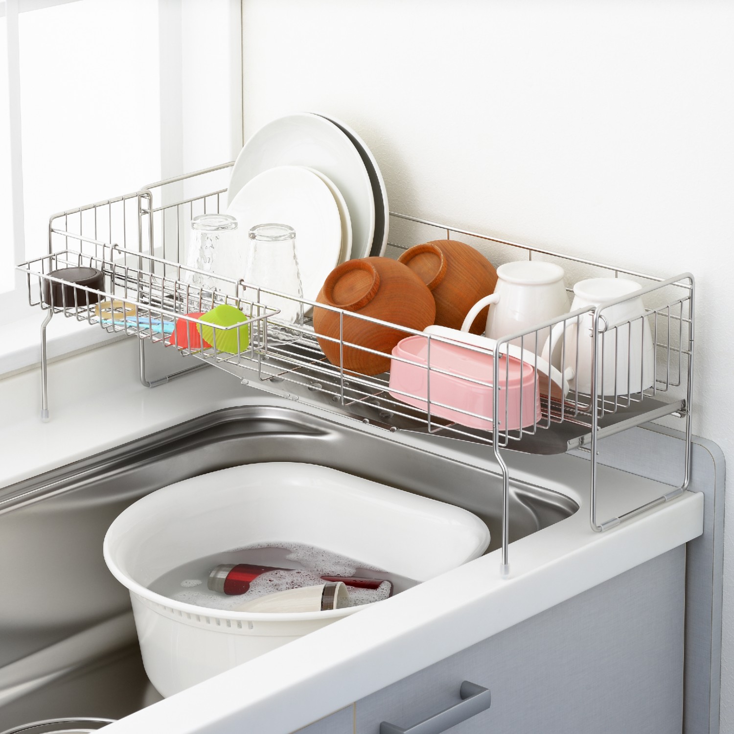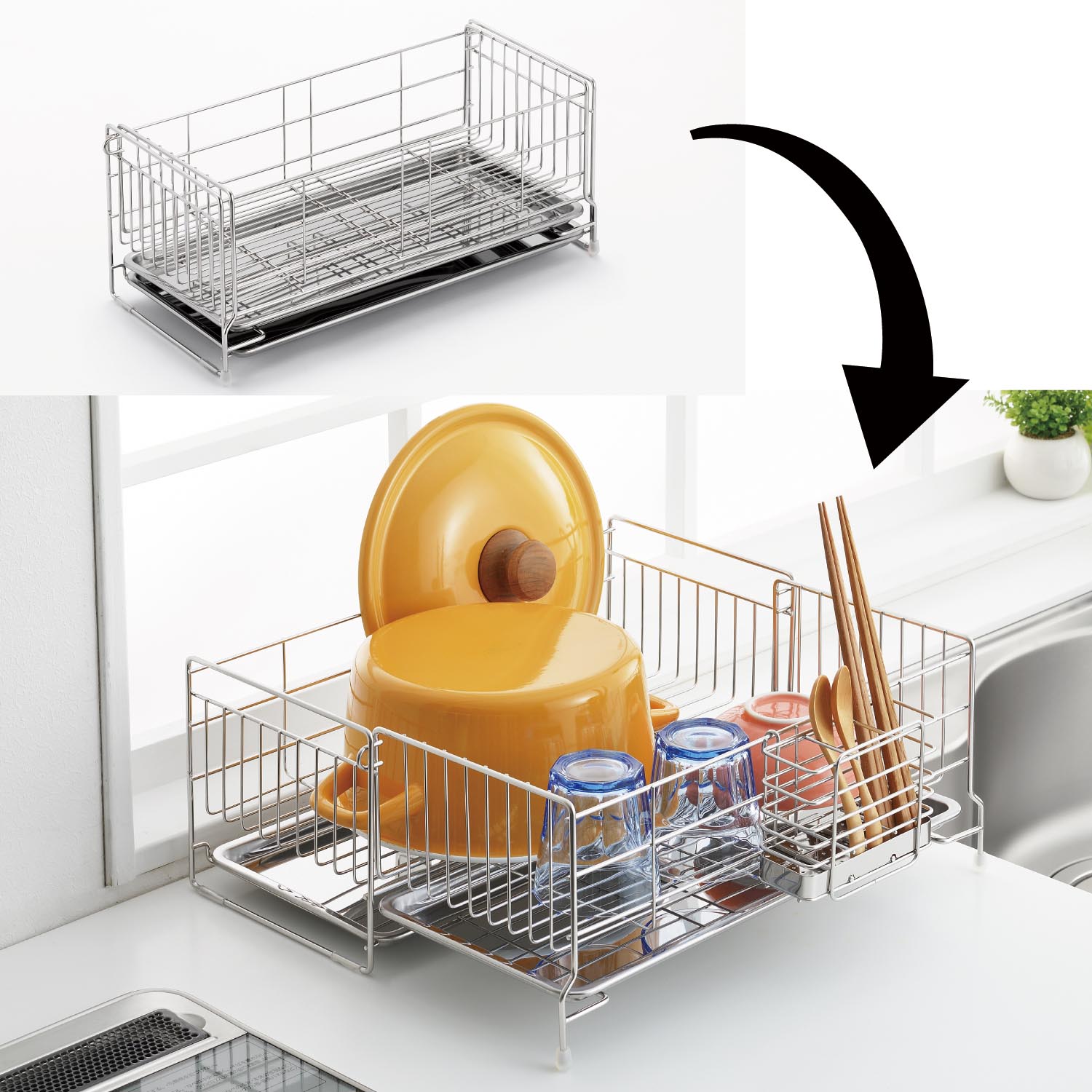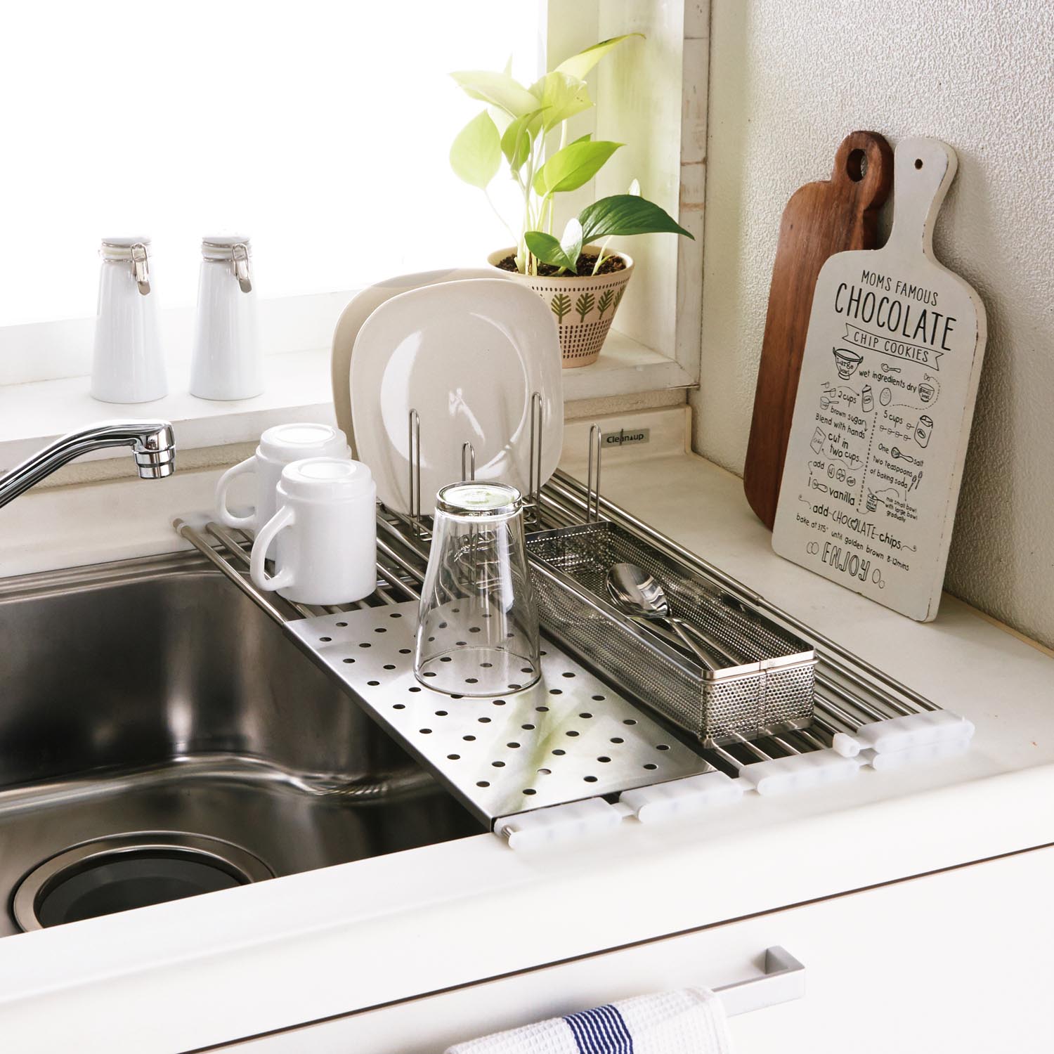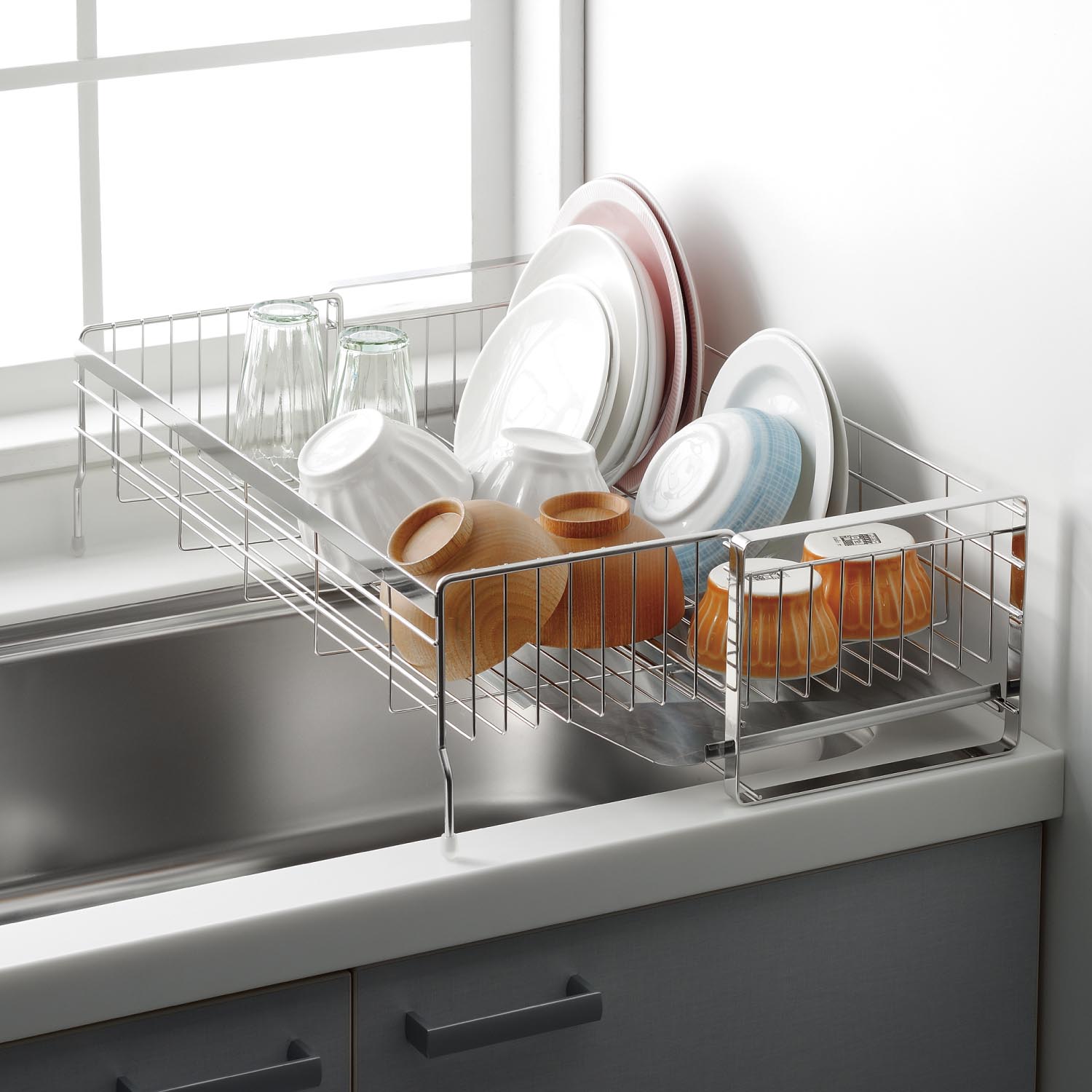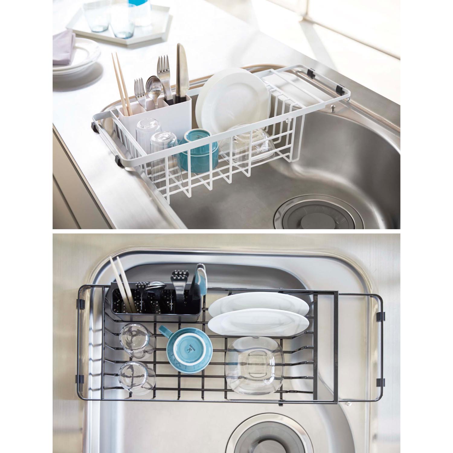 水切りかごでシンクのまわりもすっきり。省スペースで使える水切り、シンクの幅に合わせて調節できる水切り奥行に合わせて自在に伸縮できる水切り。おうちのシンクにあう水切りをさがしてね。