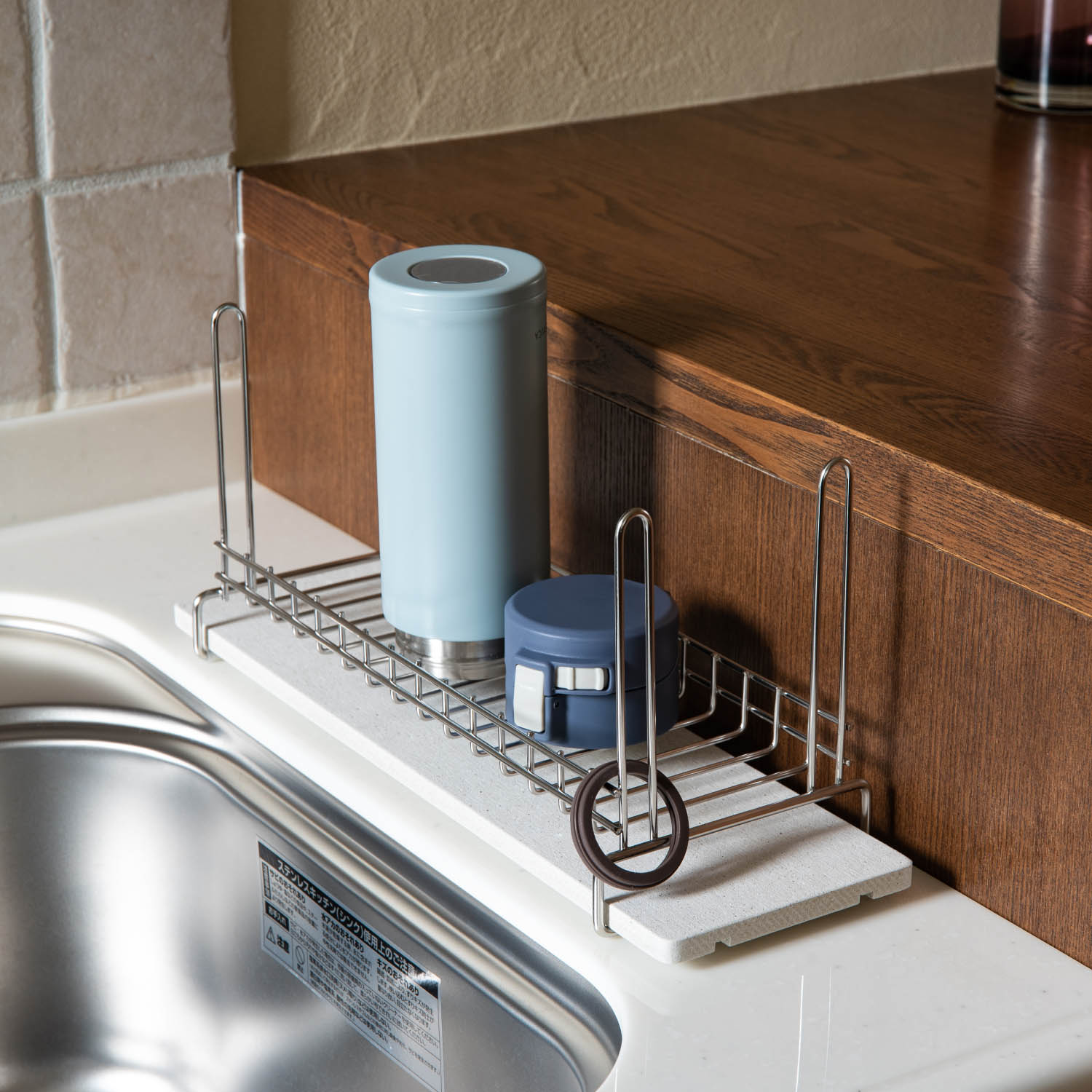 【ベルメゾン】(置き場所を選ばない)モイストレイ付きボトル&グラス用ステンレス製水切りラック(日本製) 吸水速乾性に優れた素材・モイスを、トレイに使った水切りラック。洗った食器やまな板などの水滴を、モイスが吸収しすばやく空気中に放出させます。トレイに溜まった水をいちいち捨てる手間が省け、水アカやぬめりを防ぎ清潔にキープ。 ※詳細は画像をクリック※ |