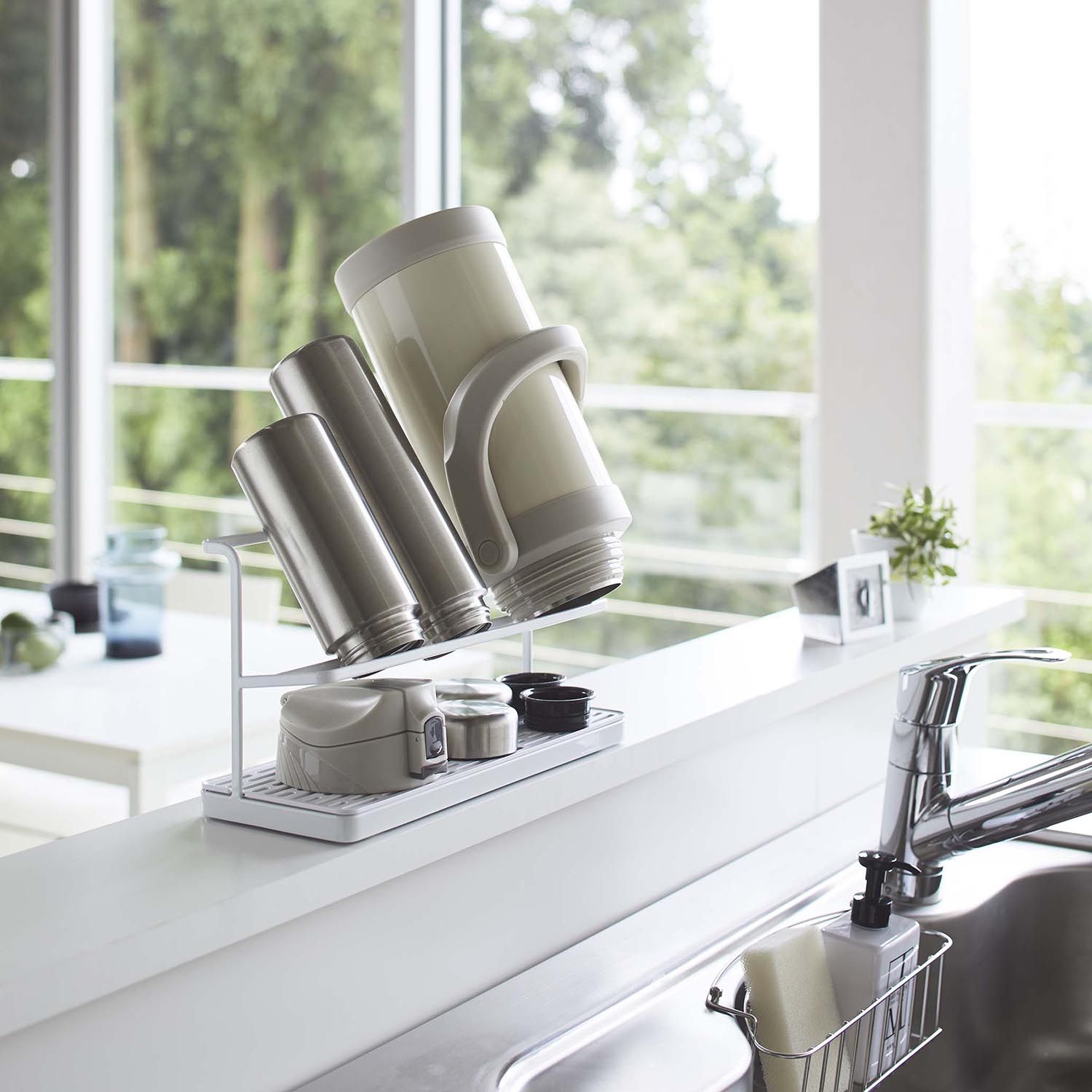 【タワー/tower】大型水筒対応水切りラック(ワイドジャグボトルスタンド) 洗った後のマグボトルやペットボトルの置き場所に困る…そんな時にはこのボトルスタンドを。サッと立て掛けるだけで干すことができ、2Lサイズのジャグボトルも2個収納できます。下のトレーには、フタや付属品を置けます。 ※詳細は画像をクリック※ |