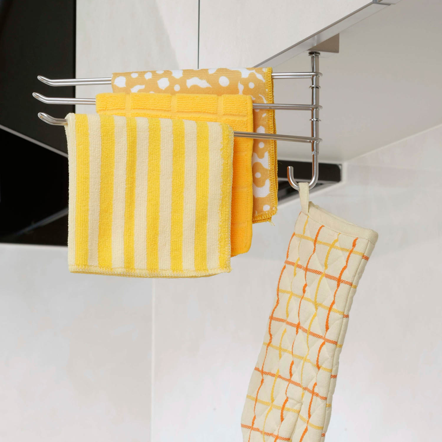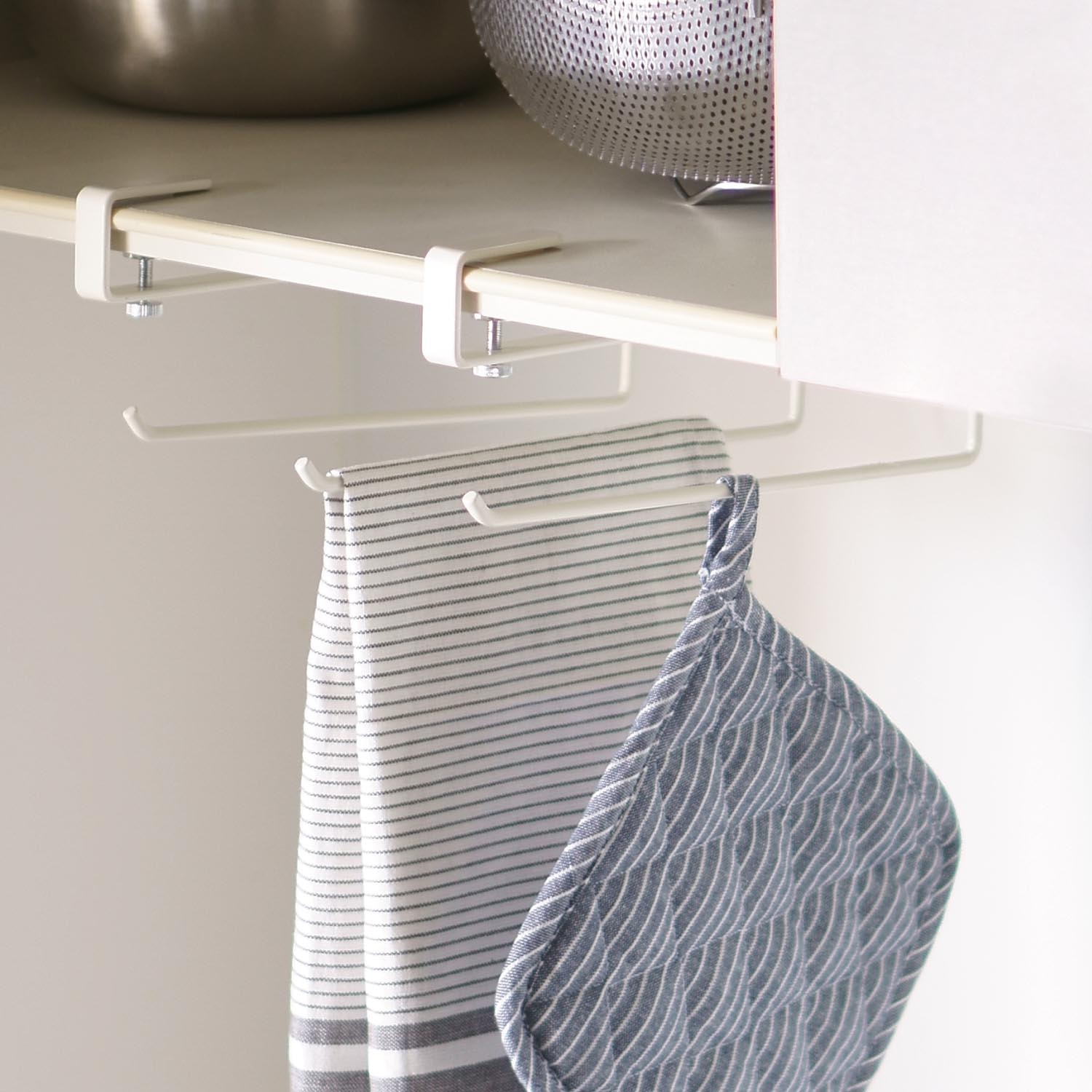 【ベルメゾン】吊り戸棚下ふきん掛け キッチンの吊戸棚下を、ふきんの定位置に。デッドスペースになりがちな吊戸棚下に簡単に取り付けられるふきん掛け。1枚を2本のバーに掛けることで、風通しがよく、乾きやすいのがポイントです 。 ※詳細は画像をクリック※ |