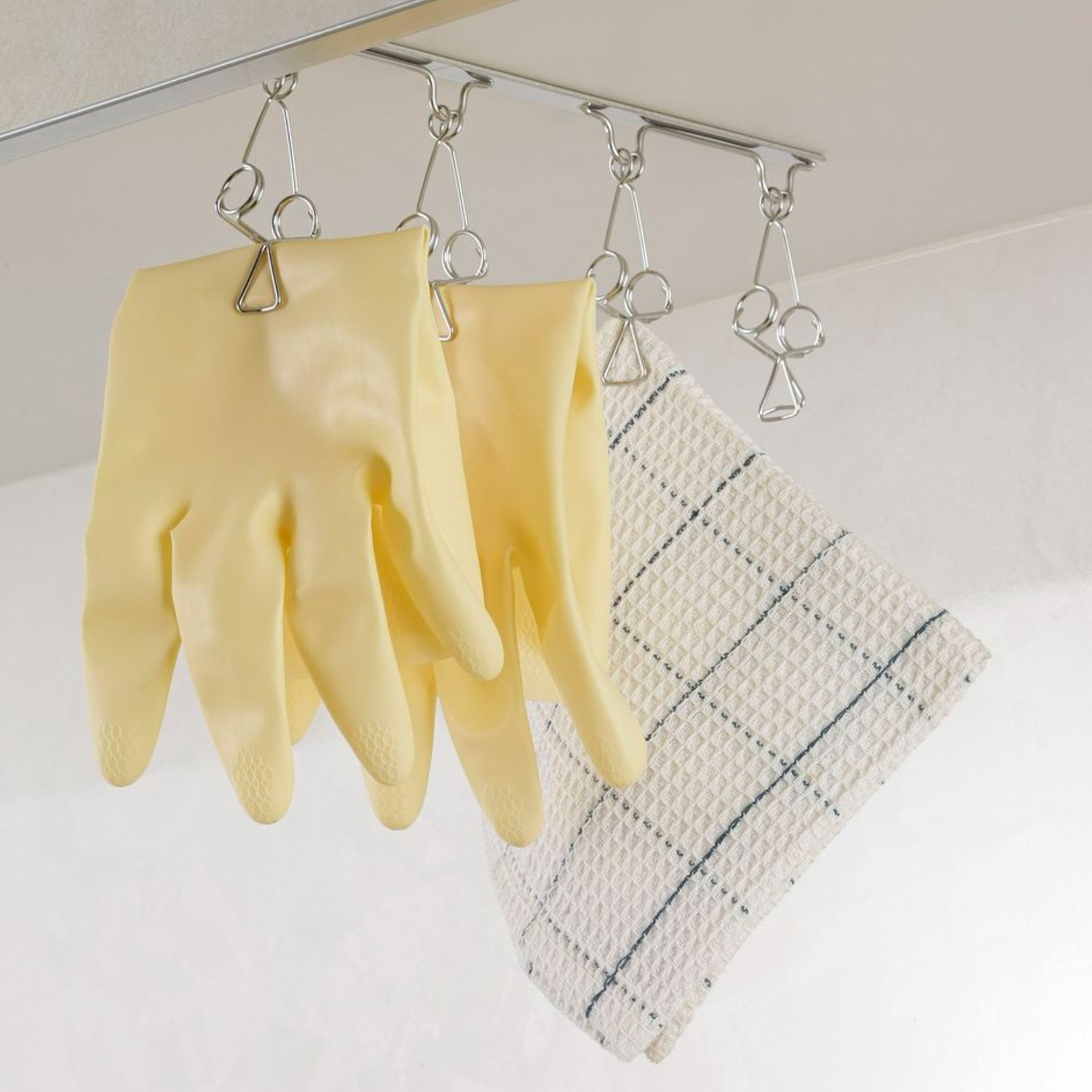 【家事問屋】吊り戸棚ピンチ[日本製] 吊戸棚に差し込むだけで設置できます。4つの開閉しやすいピンチで、フキンや手袋、などが手近に干せます。 ※詳細は画像をクリック※ |