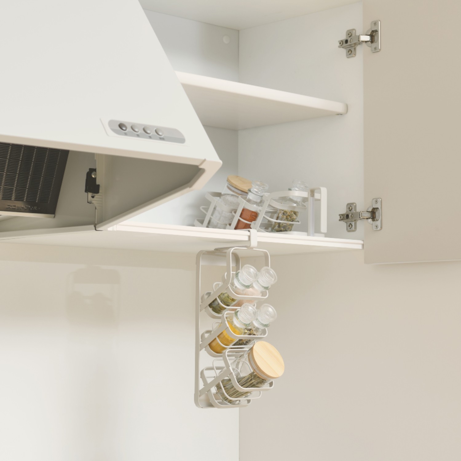 【タワー/tower】吊り戸棚下多機能ラック 吊り戸棚下に差し込むだけの簡単で便利なラック。棚、フック、ホルダーなど、付属品も充実。ラップやキッチンツールなども収納できる。 ※詳細は画像をクリック※ |
