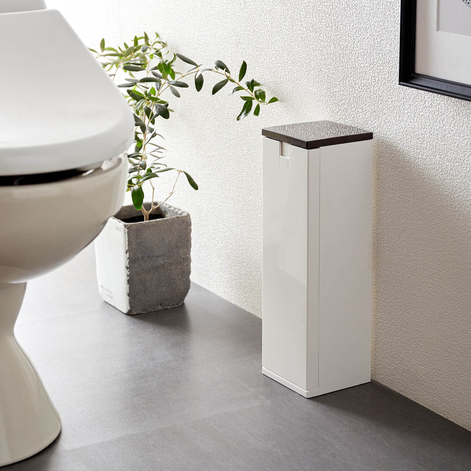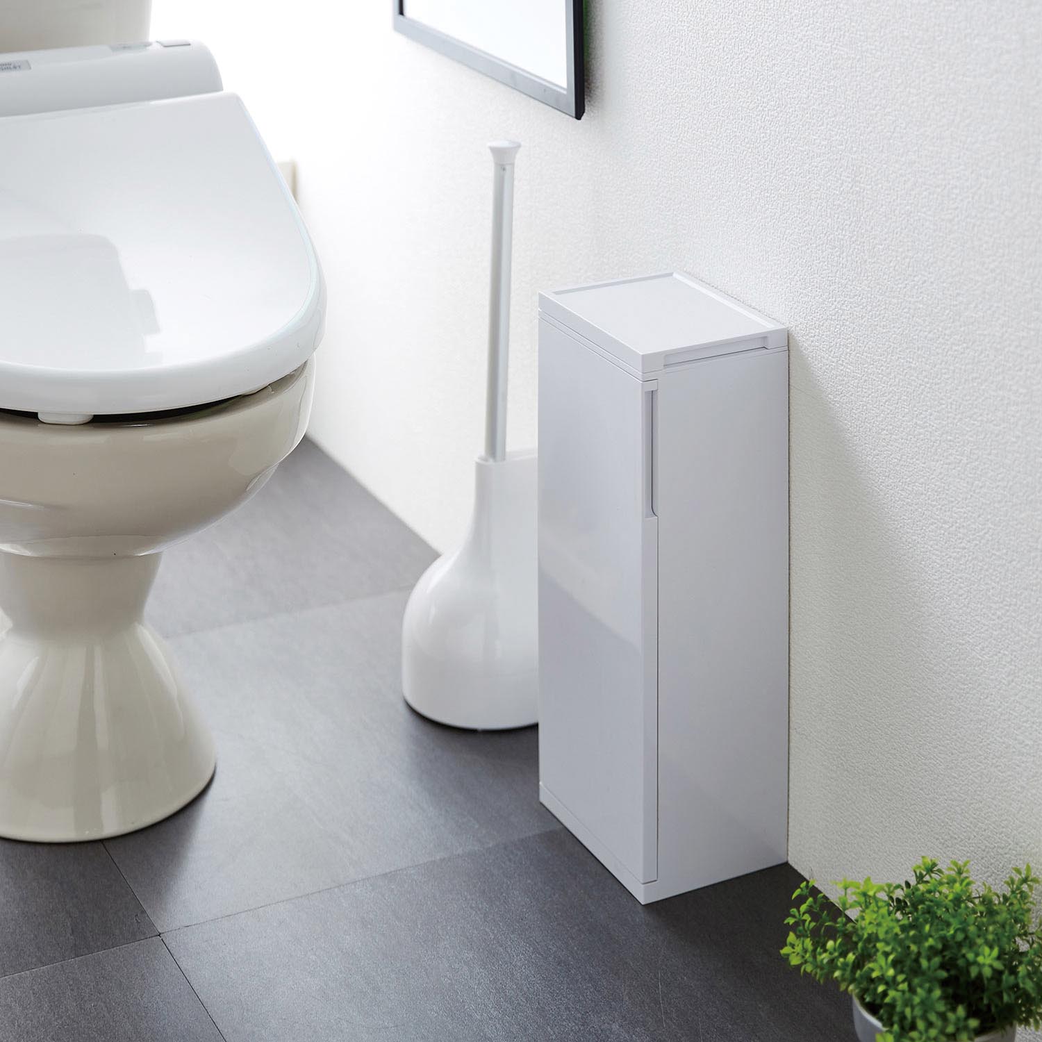 【タワー/tower】ウォールトイレポット&収納ケース(石膏ボード用ピン付き) フラップ式だから、片手で簡単に開閉できます。天板にはちょっとした小物を置くスペースにも。置いて使っても、壁の穴が目立たないボードピンで壁に取り付けることもできます。 税込 3,300円 |
