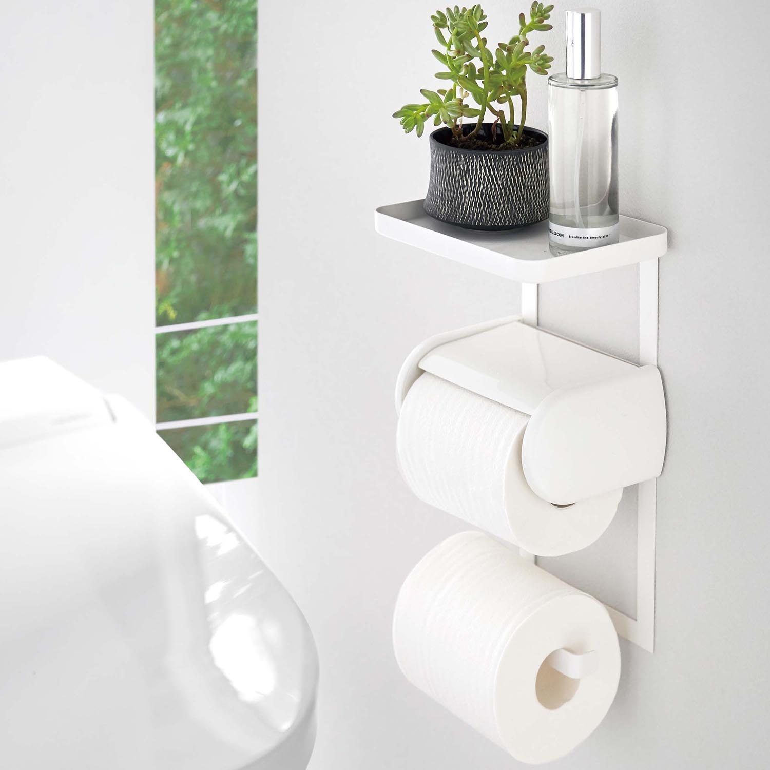 【タワー/tower】トイレットペーパーホルダー上ラック2段 トイレットペーパーホルダーの上部を利用して、小物が置けるスペースに。トイレットペーパーホルダーのネジをゆるめて、はめ込めんで設置できます。上部のトレーには、植物や芳香剤などを飾っても。下部にはトイレットペーパーの予備を収納できます。 税込 2,310円 |