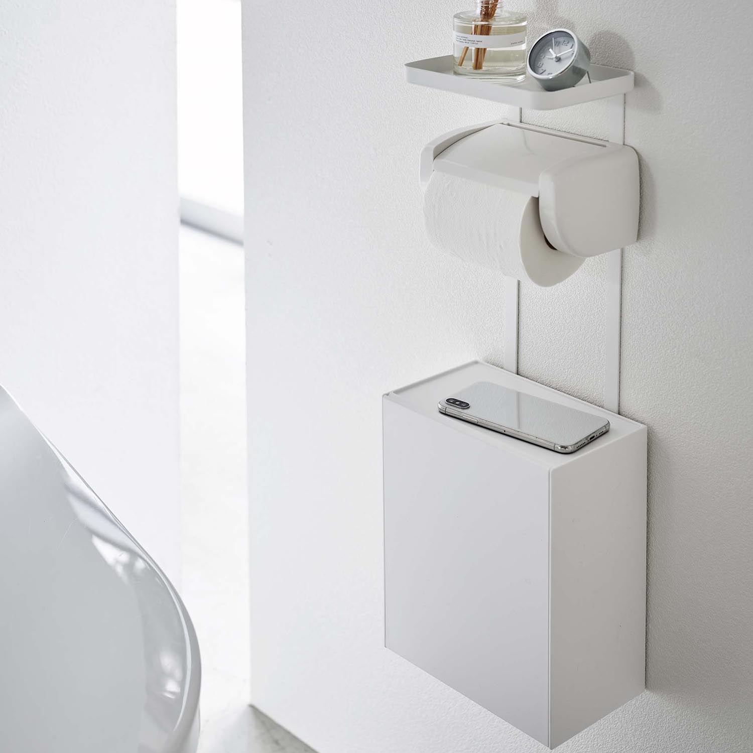 【タワー/tower】トイレットペーパーホルダー上トレー&収納ケース トイレットペーパーホルダーのネジを緩めて、はめ込むだけで取り付けも簡単です。下の収納ボックスには、掃除道具や生理用品の収納やゴミ入れに。上のトレーには、芳香剤などの小物が置けます。 税込 4,950円 |